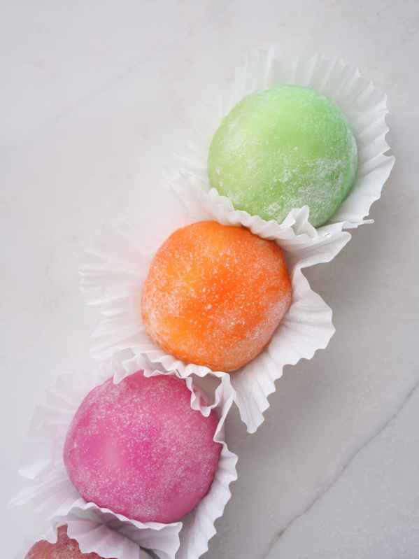 Mochi the orange cat. Photos of Mochi by Catherin J Pascal Dunk 2024. Cover photo from Pexels Free Photos shows three of the Japanese sweet ‘mochi’, the inspiration for our cat’s name, in traffic light colours.